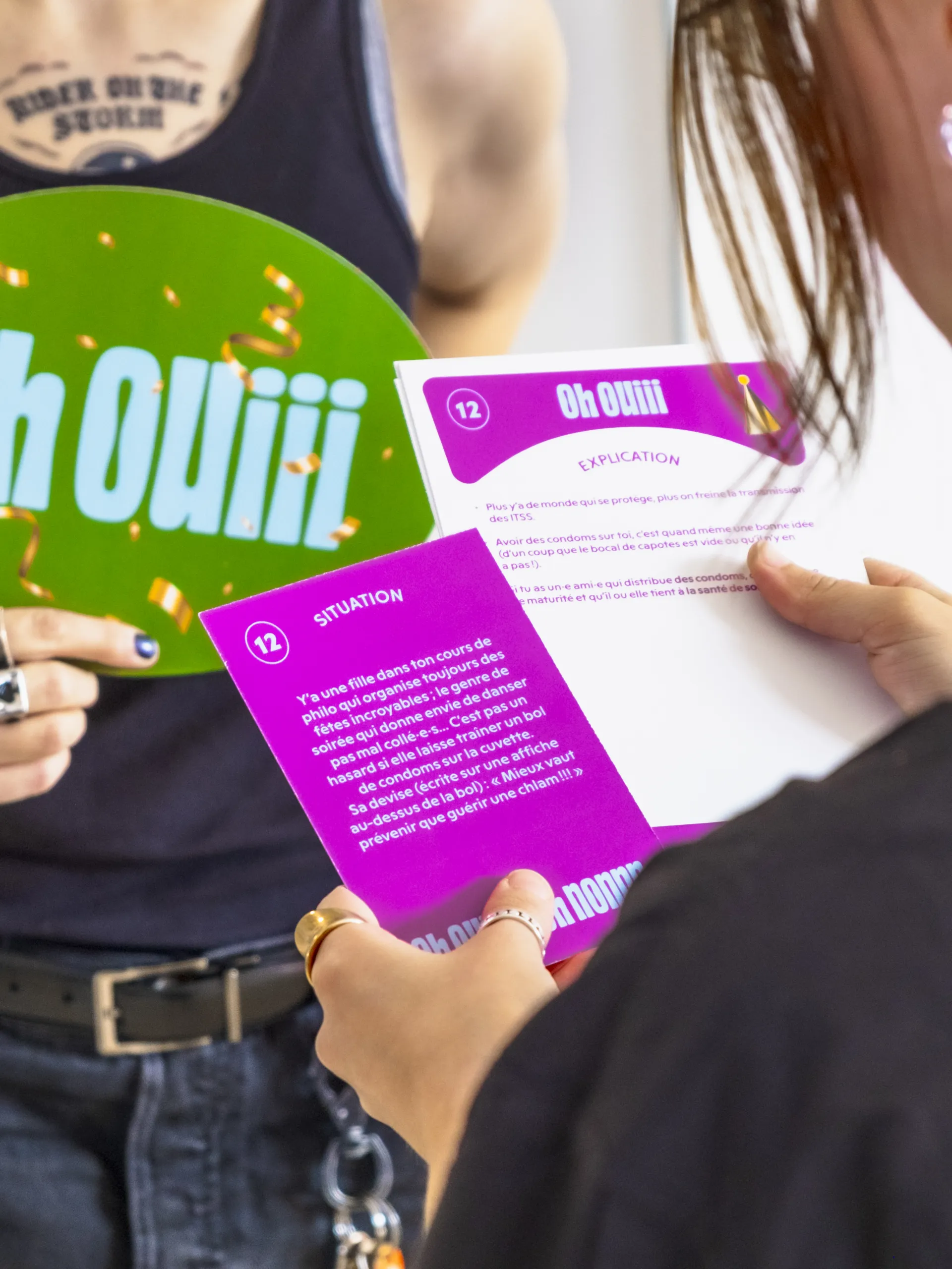 Le plus important, c’est de ne pas être dans le jugement devant les réponses des participant·e·s. Même si les situations proposées ont, en théorie, une bonne réponse, il est important de ne pas laisser transparaitre cette idée aux joueur·euse·s. Le but est que les étudiant·e·s se sentent libres de répondre honnêtement et avec authenticité, comme s’ils ou elles vivaient réellement la situation présentée. Il s’agit de présenter le jeu comme un échange, une discussion, et non comme un test qui va permettre de révéler leurs réflexes dans leurs pratiques sexuelles. L’objectif n’est pas de condamner ces réflexes, mais plutôt de les encourager à les questionner et à y réfléchir.